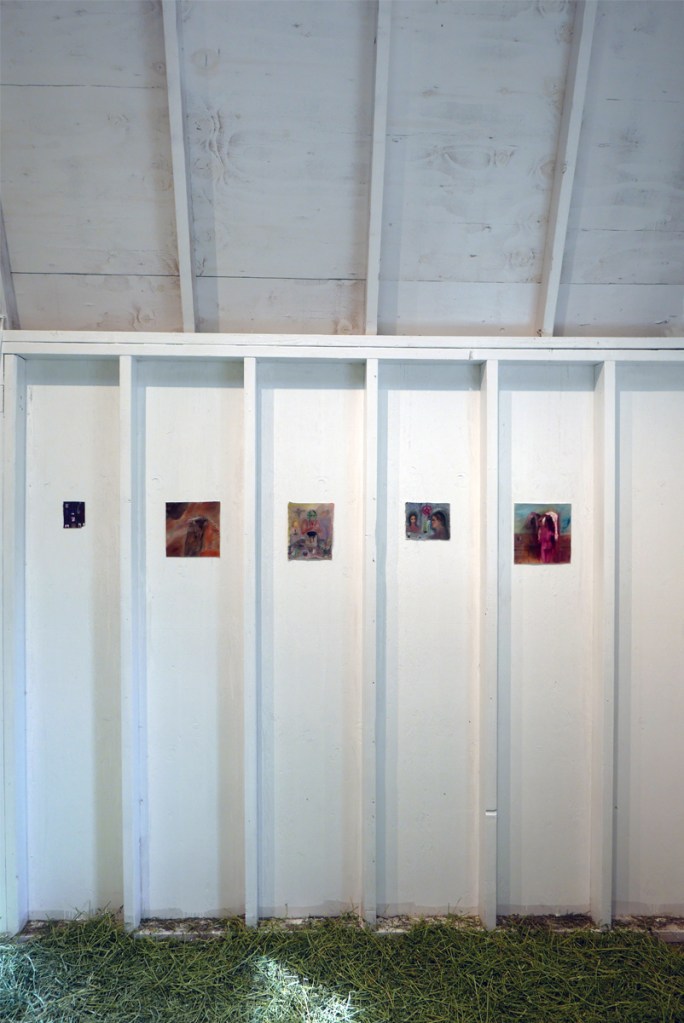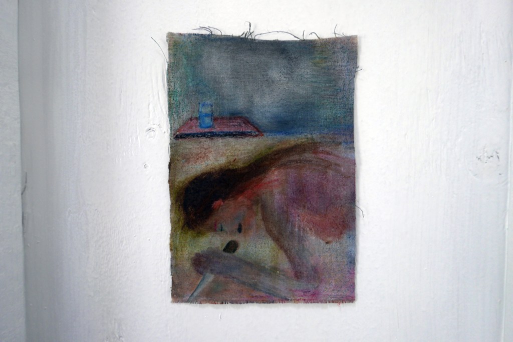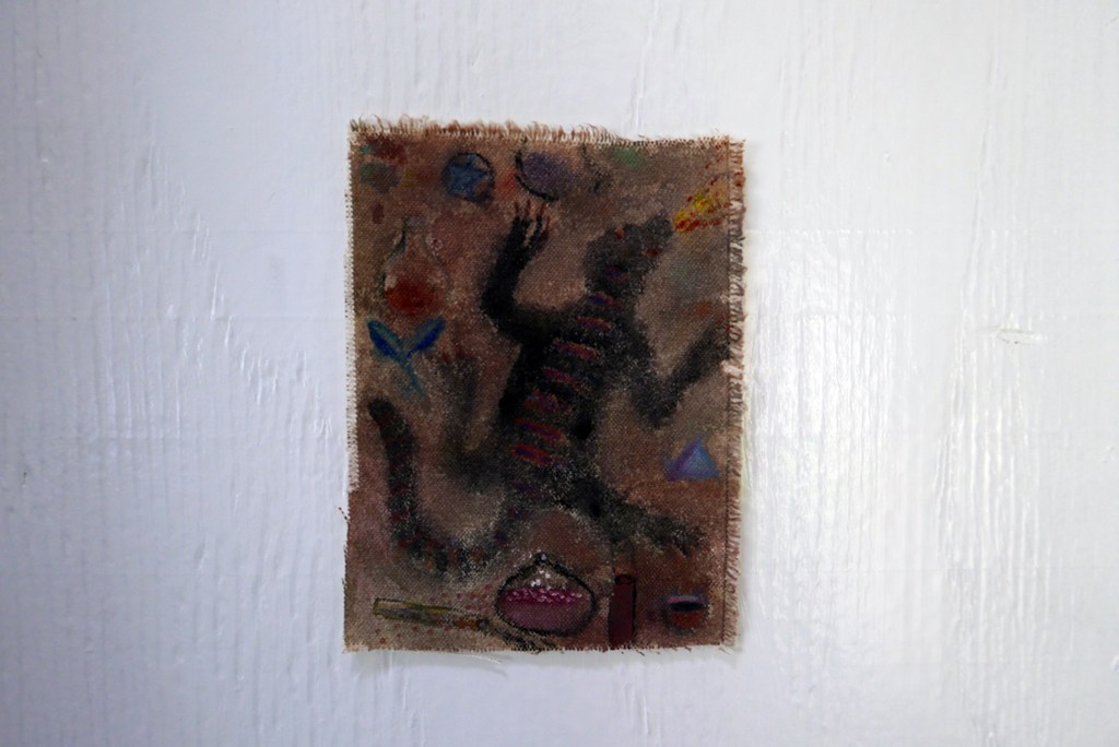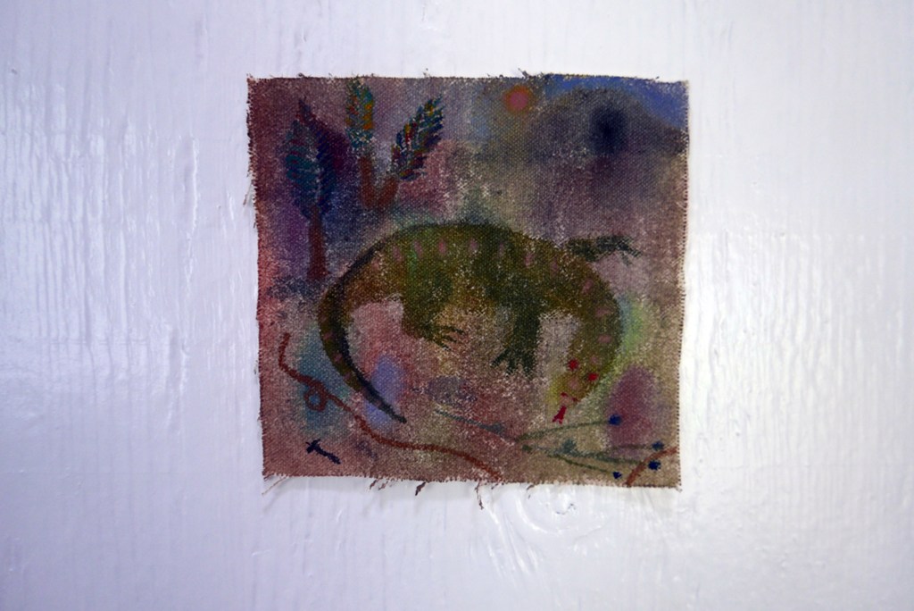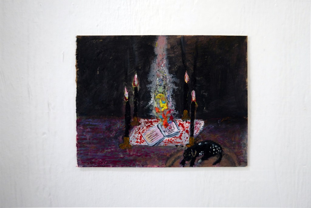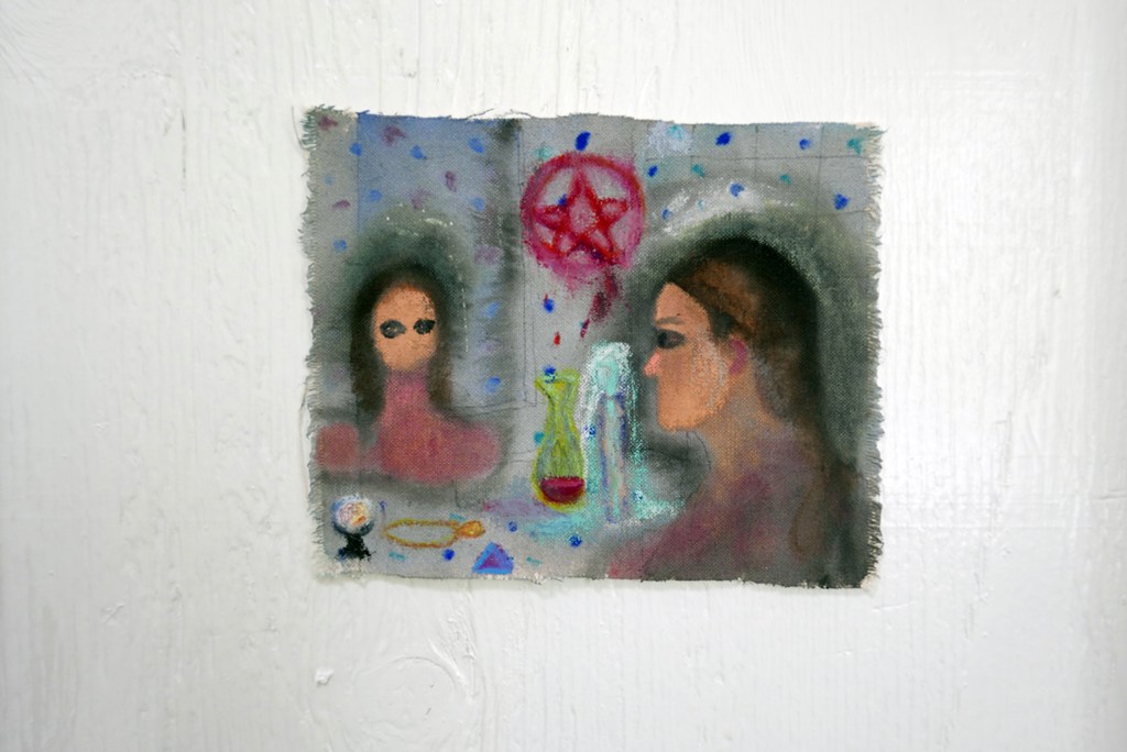 | On Trump’s Inauguration Day, painter Katelyn Eichwald’s husband was hospitalized with a serious illness. Holding everything together in a time of crisis required a kind of witchcraft: spells seemed as likely to help as doctors. The paintings in “Practical Magic” are moody and paranoid, but they are also rooted in the physical world — murky with egg tempera the color of dried blood, on unprimed canvas scraps cut roughly like animal skins. Lizards flick their fire tongues; women lean over strange brews; a pack of dogs circles endlessly in the rain, as if bewitched. These are paintings for people who google medical terminology with their breath held; who read message boards; who buy small rocks and talismans from gift shops and squeeze them in their palms while they sleep. They are paintings for desperate people, which is all of us. Katelyn Eichwald lives and works in Chicago. She earned an MFA from California College of the Arts in San Francisco (2012) and a BFA from University of Illinois in Champaign-Urbana (2009). Her most recent exhibitions include a 2-person show, “Katelyn Eichwald & Peter Shear,” at Alter Space in San Francisco and two group shows, “Domestic Tranquility” at Zero Zero LA in Los Angeles and “Mother Popcorn” at Big Medium in Austin. |